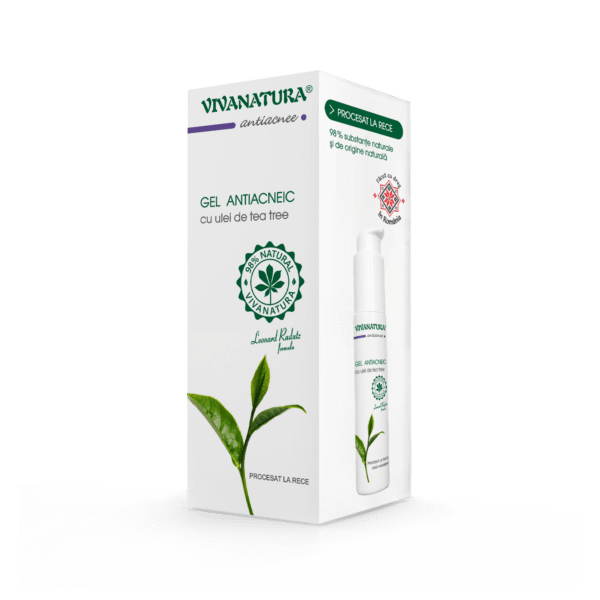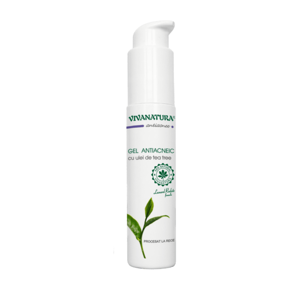 Gel antiacneic cu ulei de Tea-Tree ajută tenul afectat de imperfecţiuni şi acnee. Face parte din gama VivaNatura Antiacnee alături de: