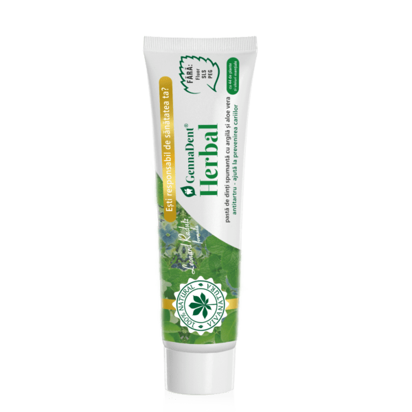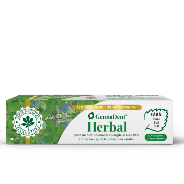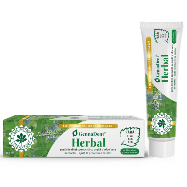 GennaDent Herbal – pasta de dinti naturala 100 % spumanta cu argila si Aloe Vera, 80 ml – Leonard Radutz formula – VivaNatura