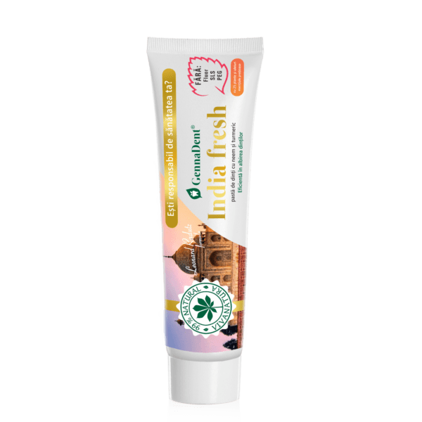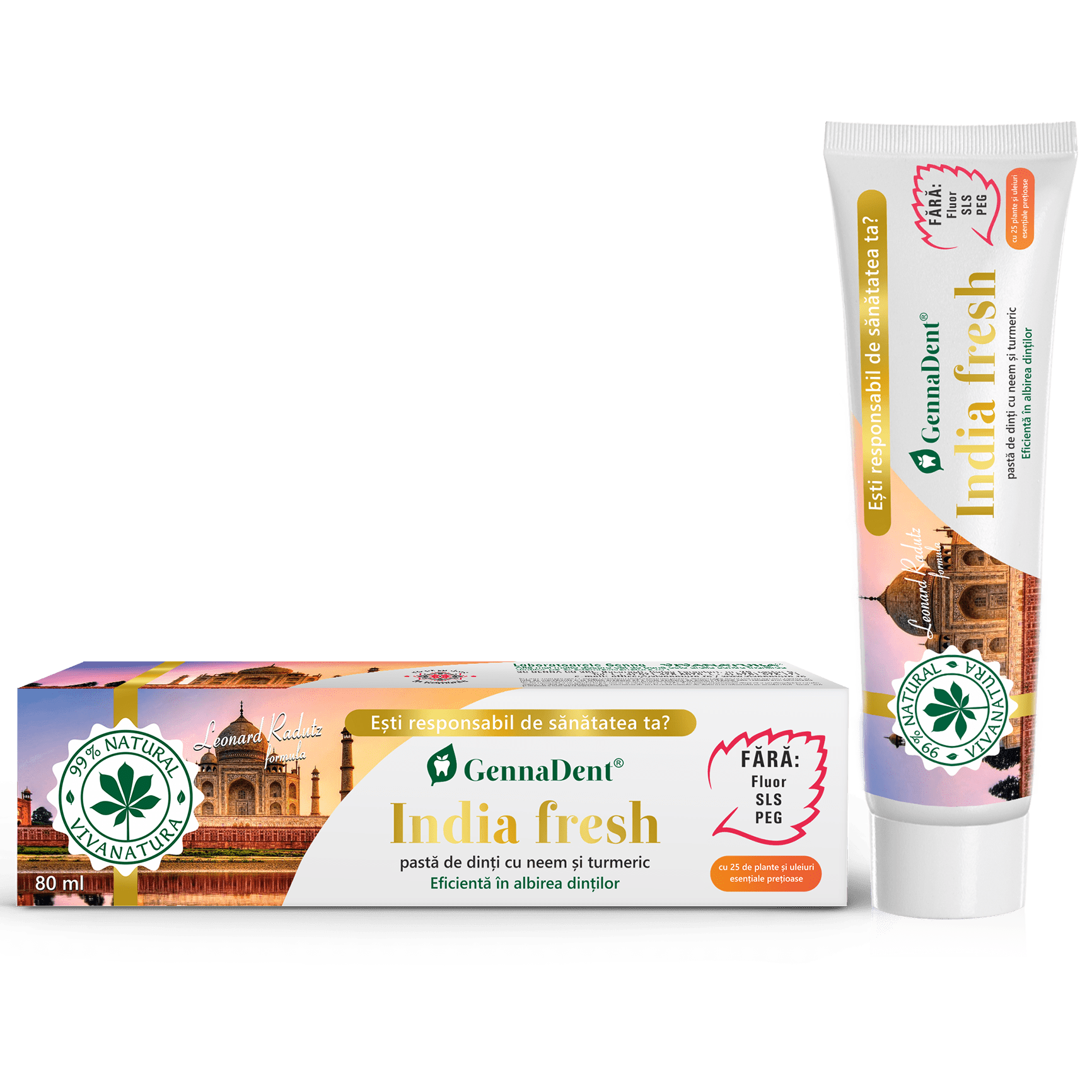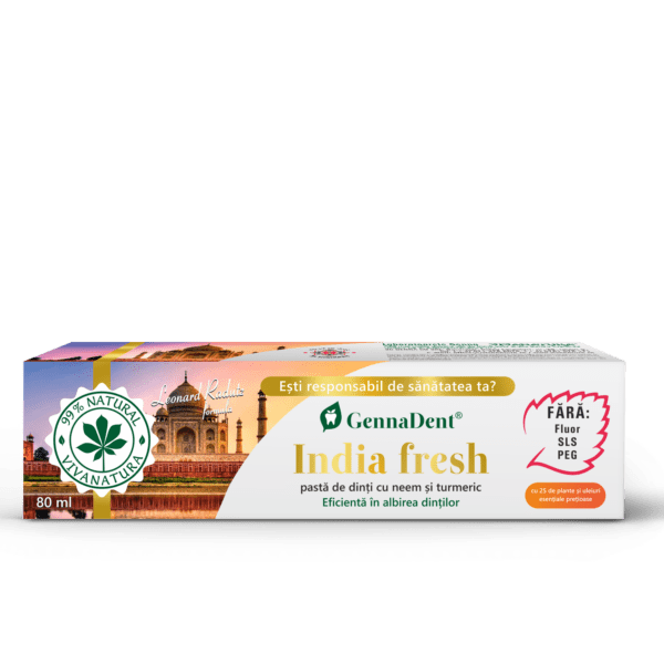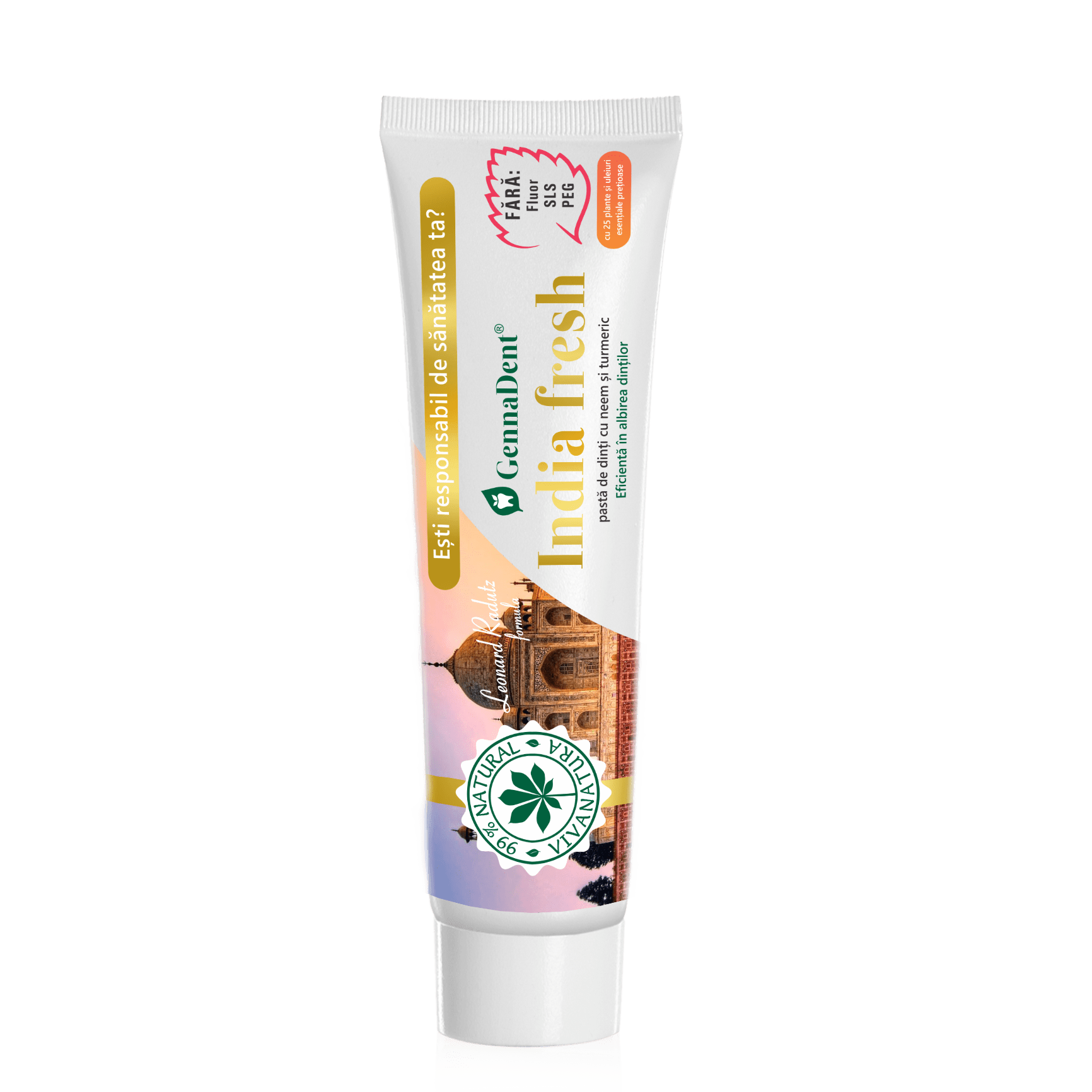 GennaDent India Fresh – Pasta de dinti naturală cu Neem si Turmeric, fara fluor, 80 ml – Leonard Radutz formula