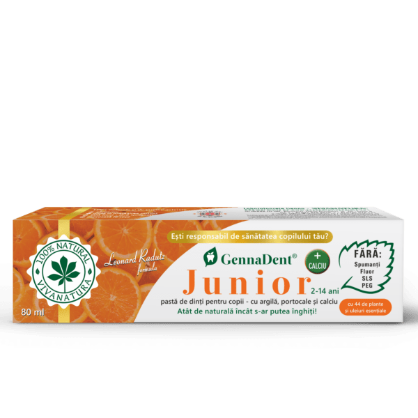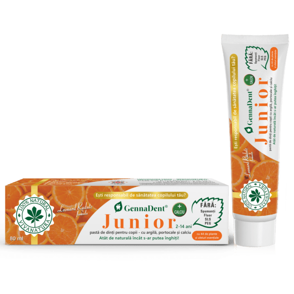 GennaDent Junior Portocale – pasta de dinti naturală pentru copii cu argila si portocale, fara fluor, 80 ml – Leonard Radutz formula – VivaNatura