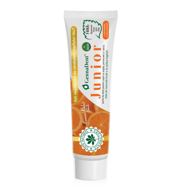 GennaDent Junior este o pastă de dinți 99% naturală şi de origine naturală cu ulei de portocale.
