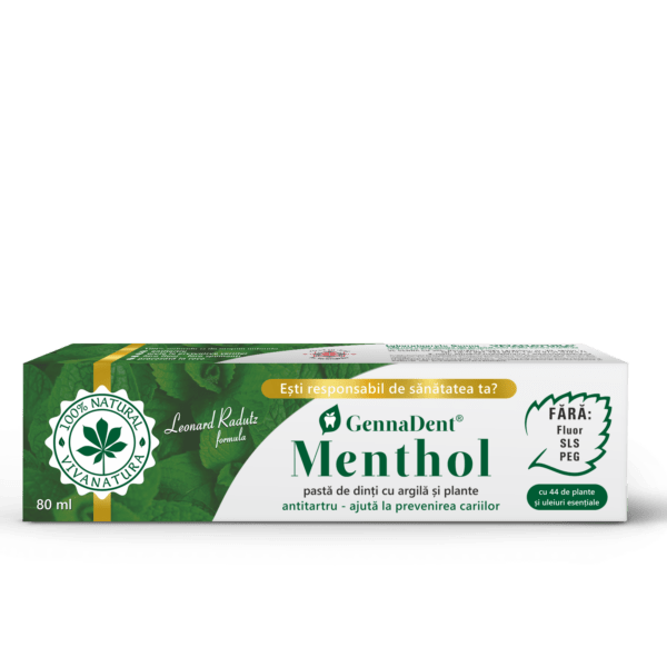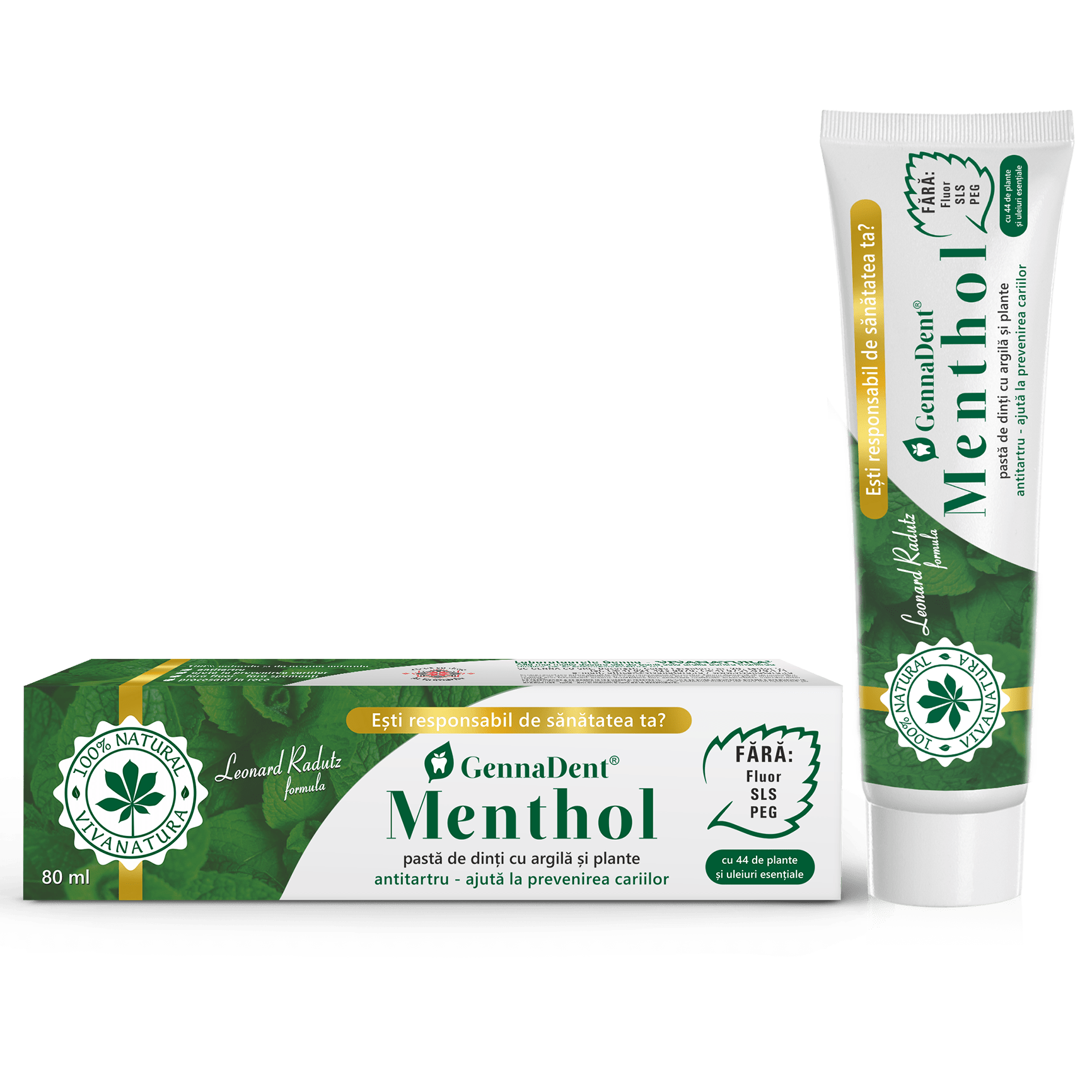 GennaDent Menthol – pasta de dinti naturala 100 % cu argila si plante, fara fluor, 80 ml – Leonard Radutz formula – VivaNatura