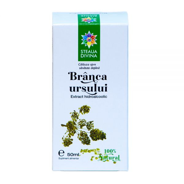 Extractul hidroalcoolic de branca-ursului este un afrodiziac tonic excelent atat pentru femei cat si pentru barbati. Compozitie : Branca -ursului (Heracleum sphondylium), apa deionizata, alcool etilic alimentar. Spre deosebire de alte preparate afrodisiace tinctura de branca-ursului (planta supranumita si “ginseng romanesc”) poate fi administrata si la hipertensivi. Cunoscuta si ca ‘planta dragostei’ Branca ursului este o planta este raspandita in padurile din Europa. Contine urocumarine poline colina fitosteroli acizi organici bioflavonoide taninuri si uleiuri volatile substante active cu efect antispastic de reducere a stresului si anxietatii de stimulare a activitatii gonadelor marind astfel dorinta sexuala. Radacina si semintele de Branca-ursului revigoreaza si reintineresc rapid organismul maresc capacitatea de efort si tonusul psihic elimina sterilitatea impotenta si frigiditatea fiind un remediu indicat si varstei a treia planta scutind organismul de neplacerile declinului fizic redand tonusul si pofta de viata. De asemenea radacina de branca ursului este si un bun reglator al tensiunii arteriale antispastic uterin si digestiv carminativ mediu. Actiuni : Tonic general afrodiziac intens stimulent al activitatii gonadelor antispastic uterin stimulent digestiv hipotensiv. Indicatii : Se recomanda ca adjuvant in: astenie sexuala impotenta frigiditate oboseala cronica nevralgii reumatism hipertensiune arteriala anexita metroanexita menopauza prematura digestie dificila Contraindicatii : Alergie la oricare dintre componentele produsului. Reactii adverse : Posibil fototoxicitate. Supradozarea poate produce reactii de tip alergic vasodilatatie periferica si hipotensiune. Daca apar manifestari neplacute adresati-va medicului sau farmacistului. Interactiuni medicamentoase : Nu se administreaza cu antibiotice si alte tratamente la care este contraindicat consumul de alcool. Mod de utilizare : Cate 20 picaturi de 3 ori pe zi intr-un pahar cu apa la 30 minute dupa masa.
