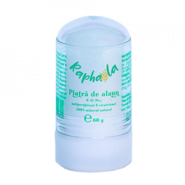Piatra de alaun este un mineral 100% natural cu proprietati bactericide antimicrobiene cicatrizante si astringente. Nu contine conservanti parabeni coloranti parfum si nici un alt ingredient artificial. Compozitie: 100% Potassium Alum Actiuni: Antiperspirant antibacterian antimicrobian cicatrizant si astringent. Indicatii: Este foarte eficienta ca antiperspirant dar si dupa ras barbierit epilare. Contraindicatii: Nu exista contraindicatii. Mod de utilizare: Se aplica local pe piele. Se umezeste inainte de utilizare.