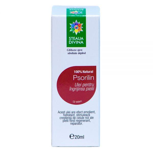 Acțiuni: emolient, hidratant, stimulează hrănirea şi oxigenarea celulară, creșterea de celule noi ale pielii fiind regenerant, reparator; are acțiune restructurantă asupra fibrelor de colagen; elasticizează și tonifică pielea; catifelează, tonifică și intensifică metabolismul celular; este astringent, purifiant, antiseptic, încălzitor și stimulează circulația periferică, antioxidant. Indicații: psoriazis, piele uscată și aspră, îmbătrânită. Ingrediente: ulei de argan (Argania spinosa seed oil) , ulei de luminiță de seară (Oenothera biennis oil) , ulei de patchouli (Pogostemon cablin oil ) , ulei de tea tree (Melaleuca alternifolia oil) , ulei de niaouli (Melaleuca viridiflora oil ) , ulei de pin (Pinus sylvestris oil) , ulei de bergamotă (Citrus bergamia oil) , ulei de geraniu (Pelargonium graveolens oil ) , ulei de mirt (Myrtus communis oil ) , ulei de mușețel (Chamomilla recutita oil ) , ulei de oregano (Origanum vulgare oil) , ulei esențial de lavandă (Lavandula angustifolia essential oil ) . Mod de prezentare: flacon de sticlă prevăzut cu picurător. ℮ 20 ml UZ EXTERN Mod de utilizare : aplicații locale delicate de 4-8 picături pe zonele alese, de 2-3 ori pe zi, până la obținerea efectelor. Se adresează adulților, adolescenților și copiilor cu vârsta de peste 6 ani. Precauţii: pentru testarea sensibilităţii sau a eventualelor alergii la una din componente este recomandată realizarea unui test simplu de toleranță, înainte de utilizare. Se aplică 1 picătură pe pliul cotului; dacă după câteva ore nu se observă nicio roșeață sau mâncărime, atunci se poate folosi în siguranță această sinergie de uleiuri esențiale. Atenție! În cazuri de maladii hormono-dependente, litiază biliară, insuficiență renală, sarcină, alăptare, copii sub vârsta de 6 ani nu se recomandă utilizarea acestui produs. Precauții la cei cu astm, epilepsie (doar cu avizul medicului). Este necesar să treacă minim 12 ore de la utilizarea acestei sinergii înainte de expunerea la soare. Nu se aplică pe răni deschise ! Nu se aplică în zona ochilor! În caz de contact accidental, clătiți ochii cu ulei vegetal, apa nu este de ajutor în această situație. A nu se lăsa la îndemâna și vederea copiilor mici! Produs testat dermatologic! Valabilitate 2 ani. A se folosi preferabil înainte de data: vezi pe ambalaj, dar nu mai târziu de 18 luni de la deschidere. A se păstra la temperaturi între 10—25°C!