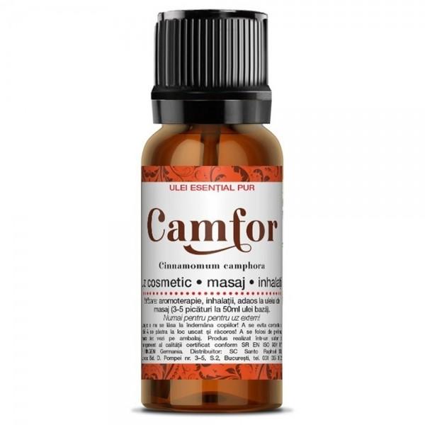 Uleiul esential de camfor este numit in Madagascar „uleiul care tamaduieste”. Are proprietatea de a vehicula în corpul uman principiile vindecătoare ale altor plante medicinale. Mentine sanatatea plamanilor si inimii. Originar din Taiwan, China, Japonia, arborele de camfor (Cinnamomum camphora) poate creste pana la o inaltime de peste 35m si are nevoie de cel putin 50 de ani pentru a produce uleiul. Uleiul de camfor are efect benefic asupra oricaror afectiuni psihosomatice, avand in acelasi timp beneficii distincte pentru piele atunci cand este folosit cu mare grija. Stimuleaza functiile organismului si are efect calmant si tonic asupra psihicului.